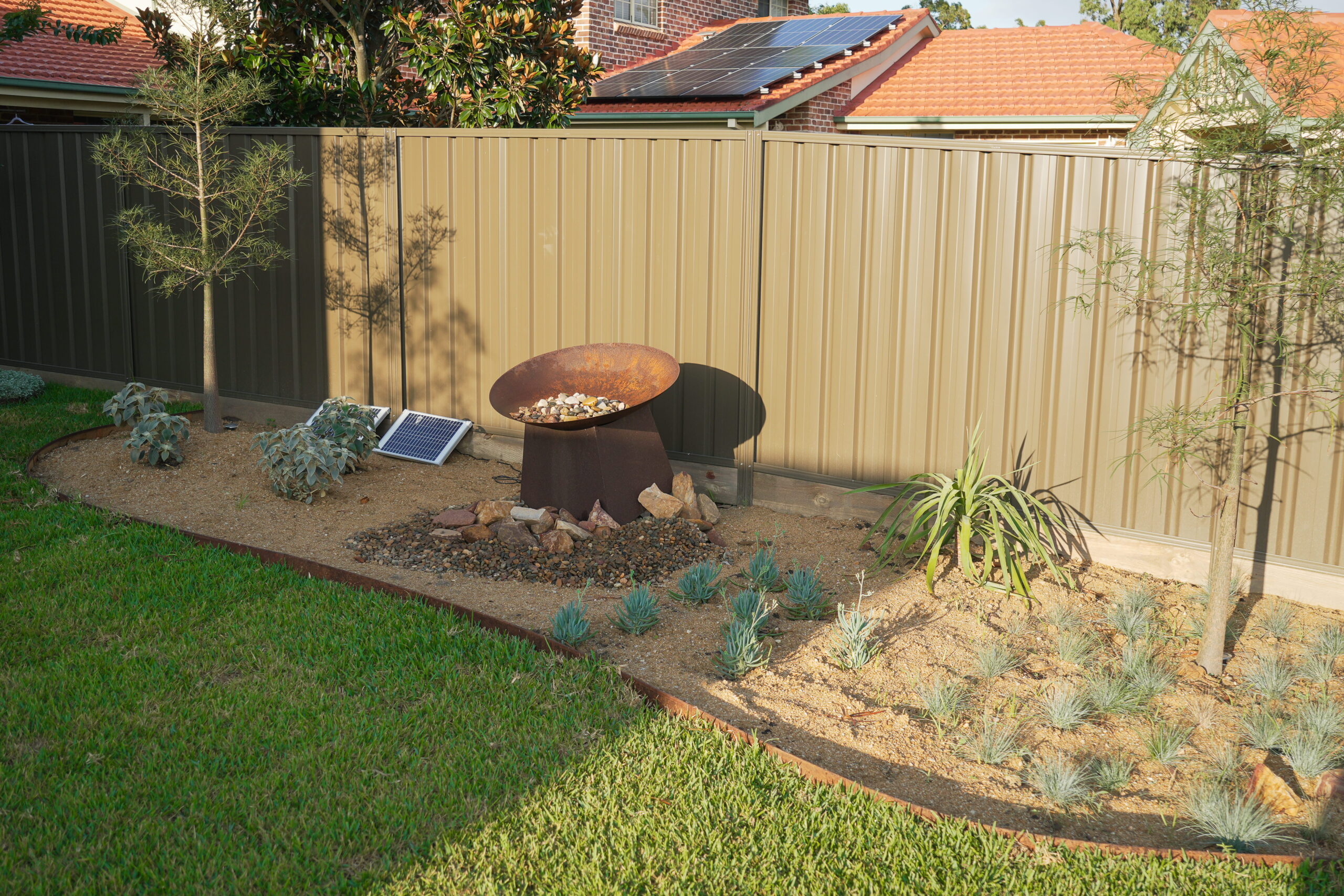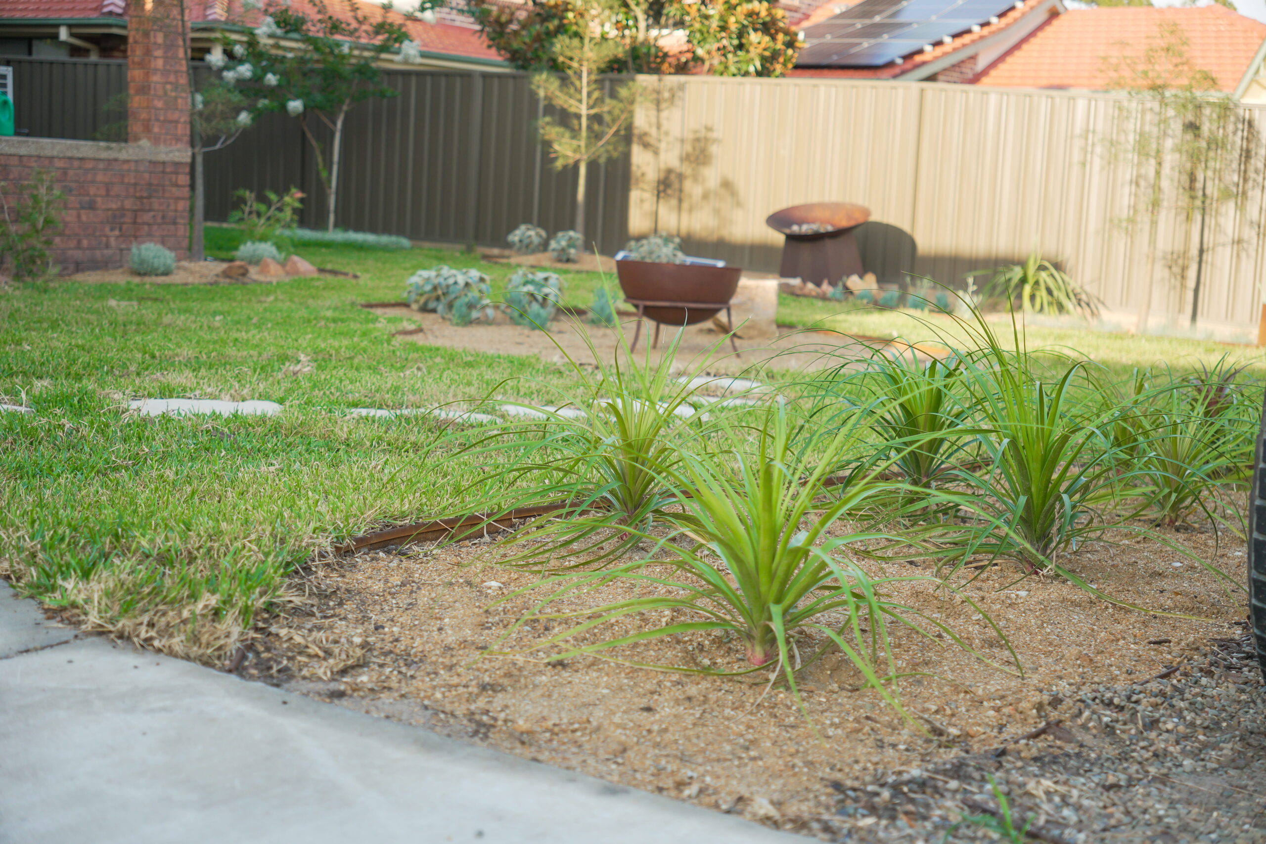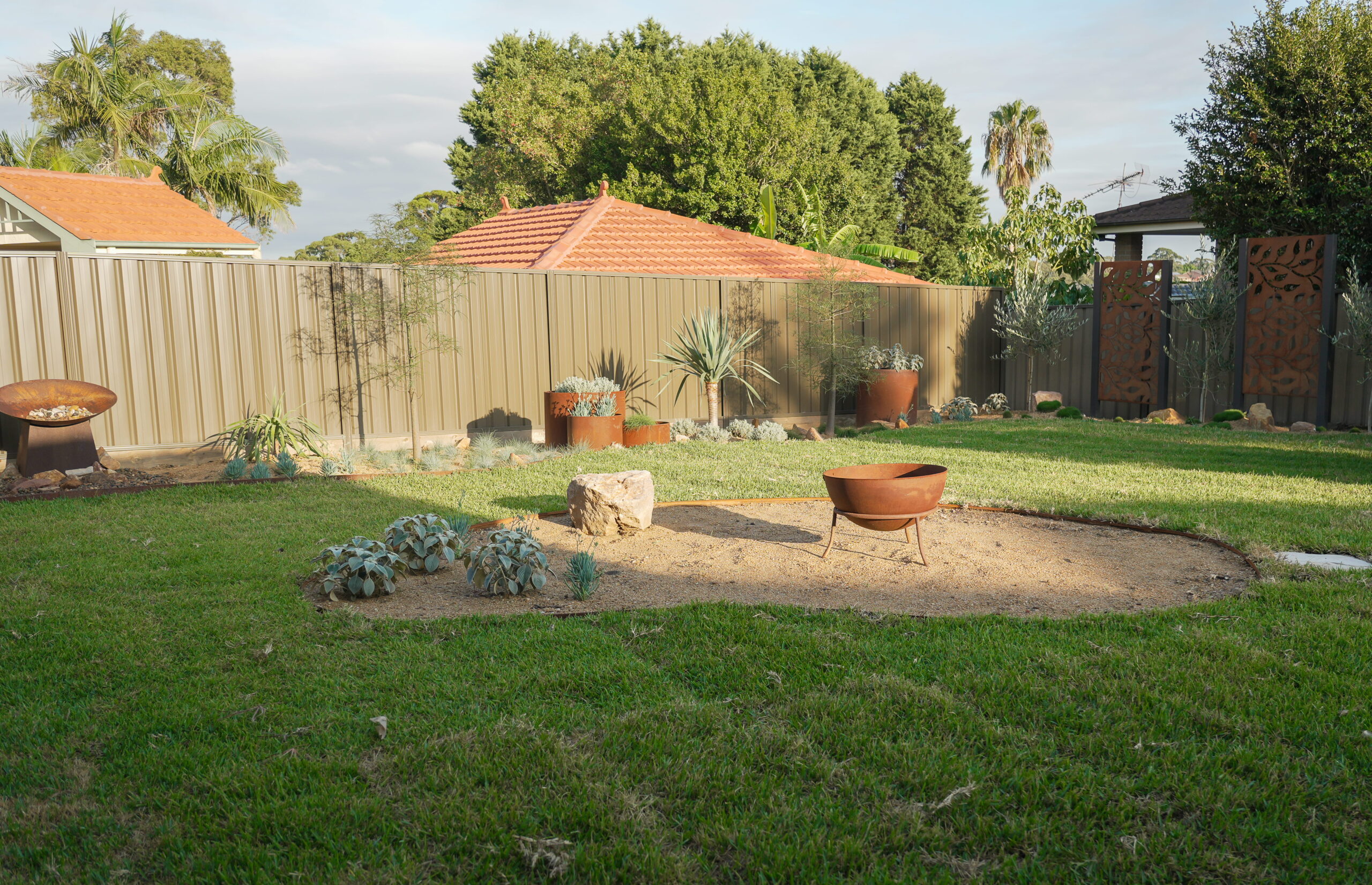 Crushed granite garden areas were incorporated to provide a durable, natural surface that enhances drainage and reduces maintenance, while corten steel edging defines planting zones and pathways with precision, reinforcing the contemporary aesthetic. Carefully selected drought-tolerant planting, including succulents, ornamental grasses, and feature plants, ensures year-round visual interest while supporting water-efficient landscaping practices ideal for residential properties in Illawong and the wider Sutherland Shire.